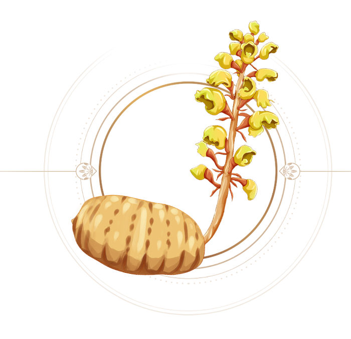 天麻为兰科植物天麻Gastrodia elata Bl.的干燥块茎。又名赤箭、离母、鬼督邮、神草、独摇芝、赤箭脂、定风草、合离草、独摇、自动草、水洋芋。立冬后至次年清明前采挖(以冬麻为好),是著名的中药材。早在二千多年前就已入药。富含天麻素,香荚兰素,蛋白质,氨基酸,微量元素。其性辛、温、无毒,有抗癫痫,抗悸厥,抗风湿;镇静
